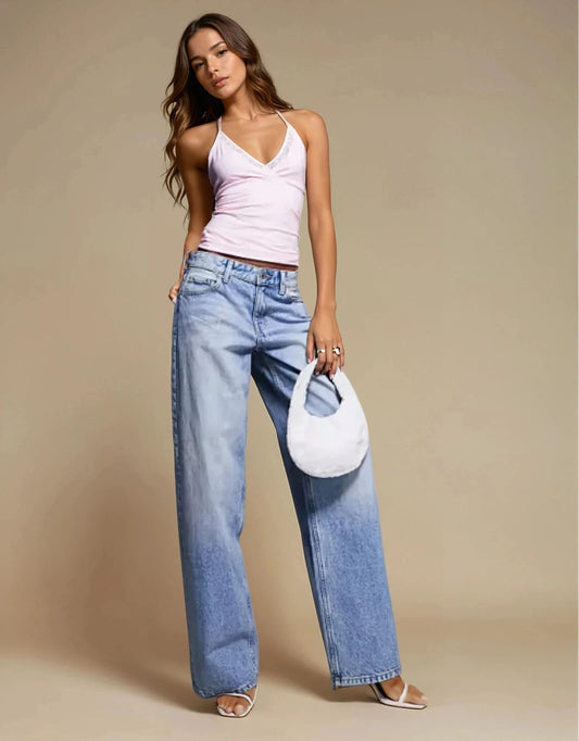 Exclusive Double Sculpted Lace Trim Halterneck Top in Baby Blue