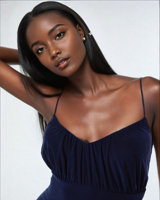 Double Layer Ruched Bust Strappy Maxi Dress in Navy